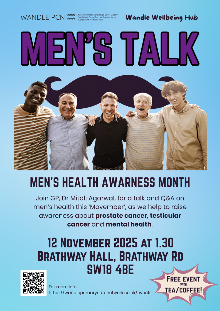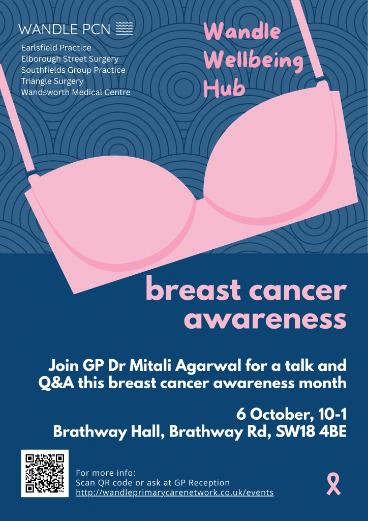 We have recently launched a new community arm for our 5 GP practices – the Wandle Wellbeing Hub. This timely intervention adds a new dimension of support for our patients, offering social activities, exercise initiatives, events and expert-led sessions outside a traditional clinical setting. Join us at Brathway Hall, Brathway Road, London SW18 4BE on Mondays (10 am–1 pm) and Wednesdays (1:30 pm–3:30 pm).
